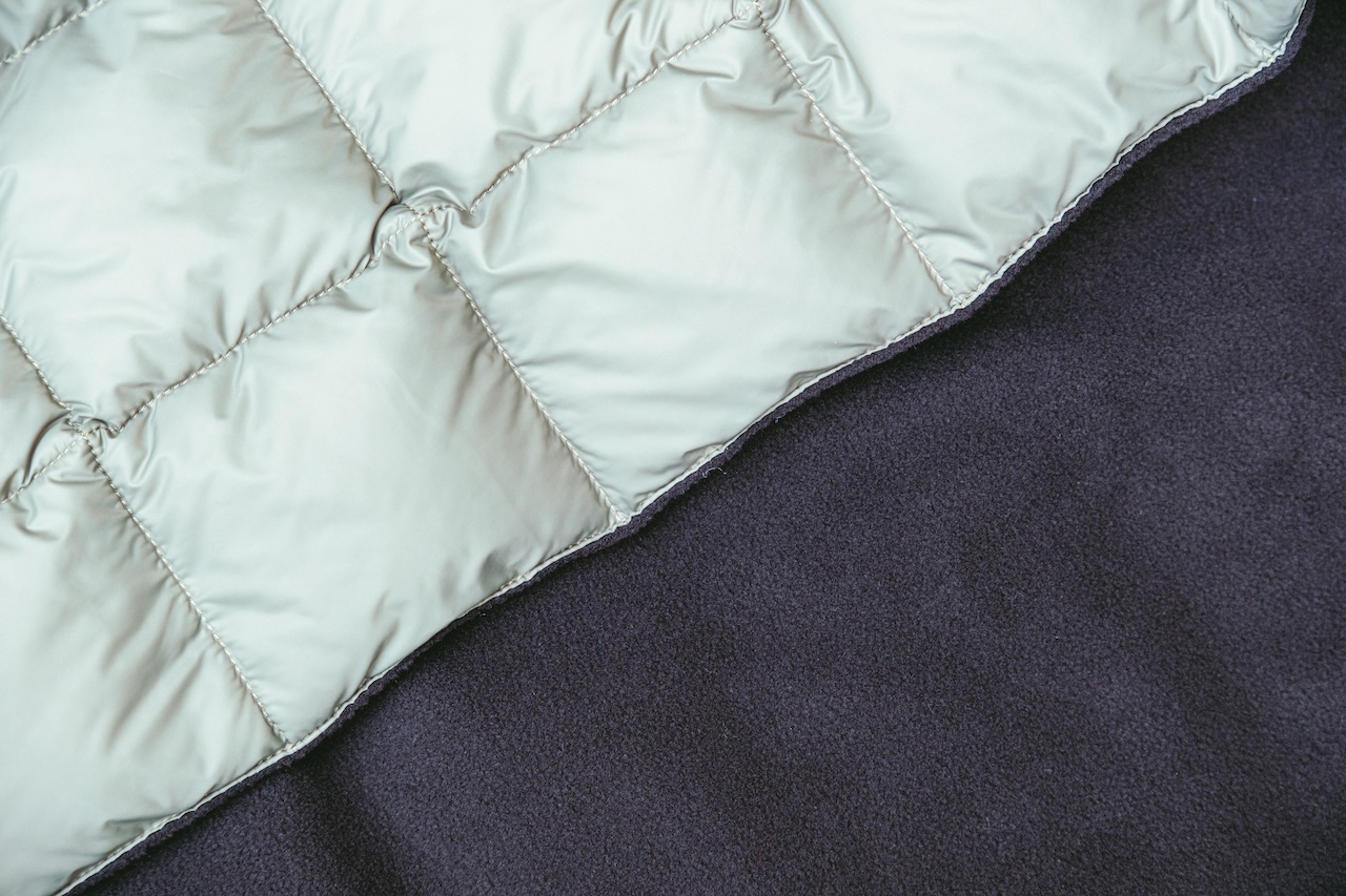 生地はダウンとフリースの両面仕様で、お好きな面でご使用いただけます。
