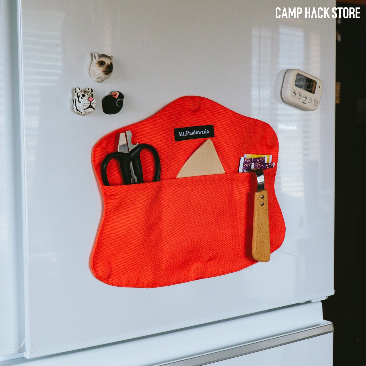 マチがない作りなので、薄い小物アイテムの収納向き。ハンマーや鋳物ペグのような重い物を入れるとずり落ちてしまうのでご注意ください。