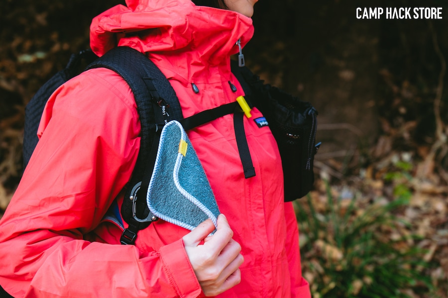 ハンカチにあるあるな「拭いた後ポケットの中で湿ってる」なんてこともなく、ぶら下げて歩いているうちに乾くのがGOOD!