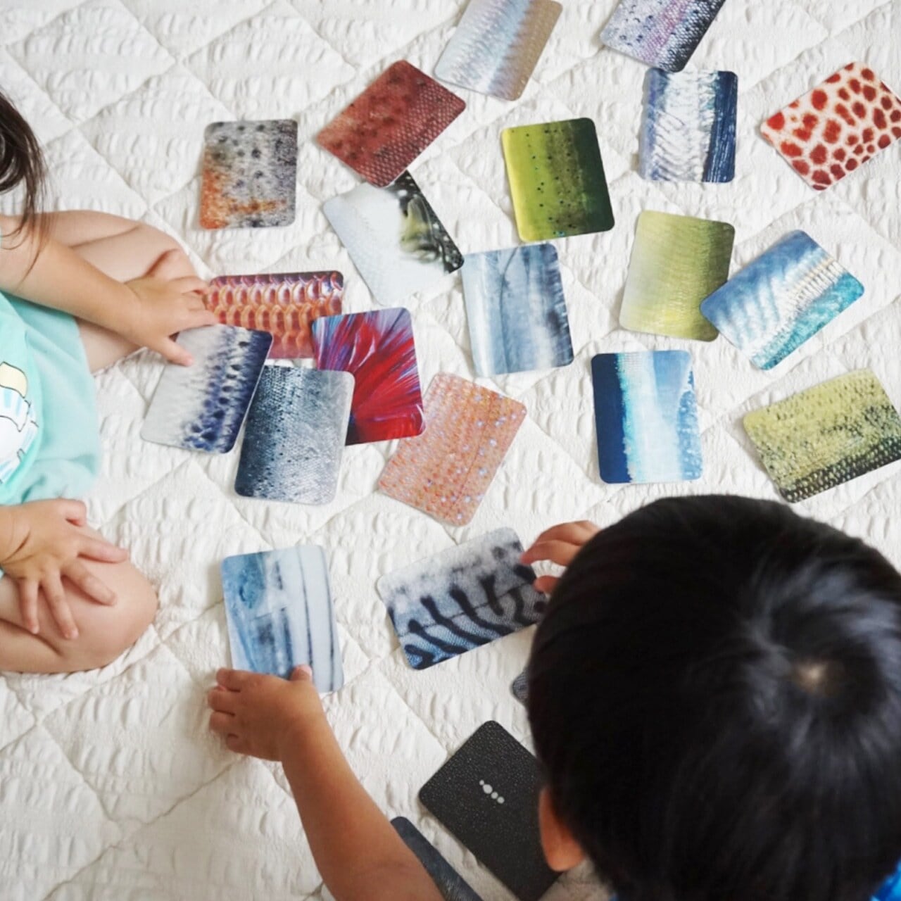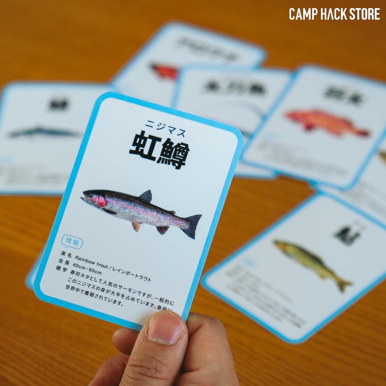 「さかなかるた」は、魚の皮の模様だけで魚種を当てるカードゲーム。