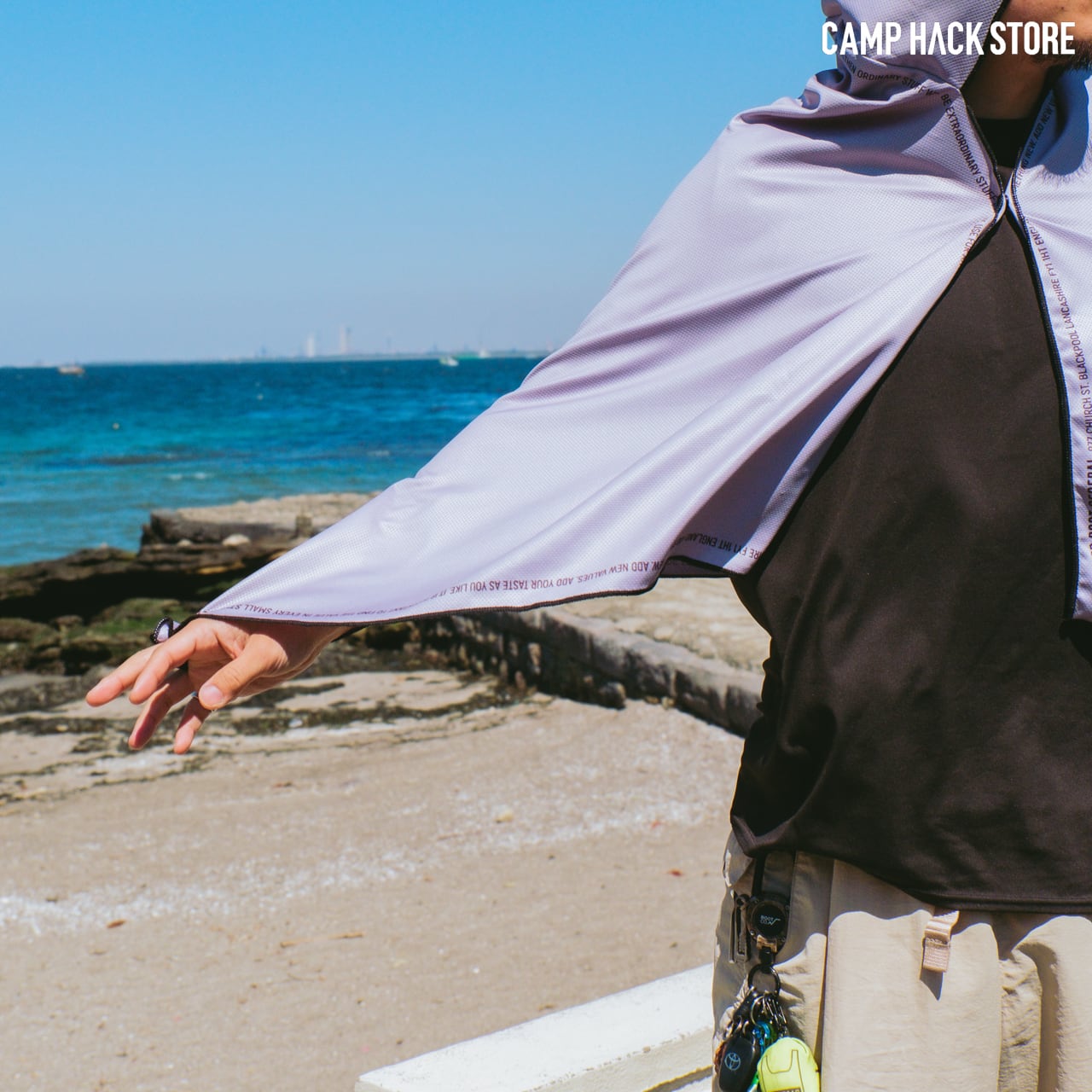 熱い日差しから守ってくれる「クイックドライ フーディータオル」に、ビッグサイズが登場。上半身全体をまるっと覆いたい方におすすめのサイズです。